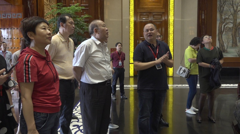 代表團(tuán)一行20余人首先參觀了辦公樓大廳,劉總為大家細(xì)致講解了大廳內(nèi)體現(xiàn)匯仁企業(yè)文化的元素。大廳內(nèi)的伏鳥雙尾虎、自然山水玉、側(cè)墻上的中醫(yī)藥斗、東西兩側(cè)的國畫和木雕、地板上的太極八卦圖無不體現(xiàn)出匯仁對傳統(tǒng)文化的重視,大家都對匯仁濃郁的傳統(tǒng)中醫(yī)藥文化氛圍給予了高度評價(jià)。